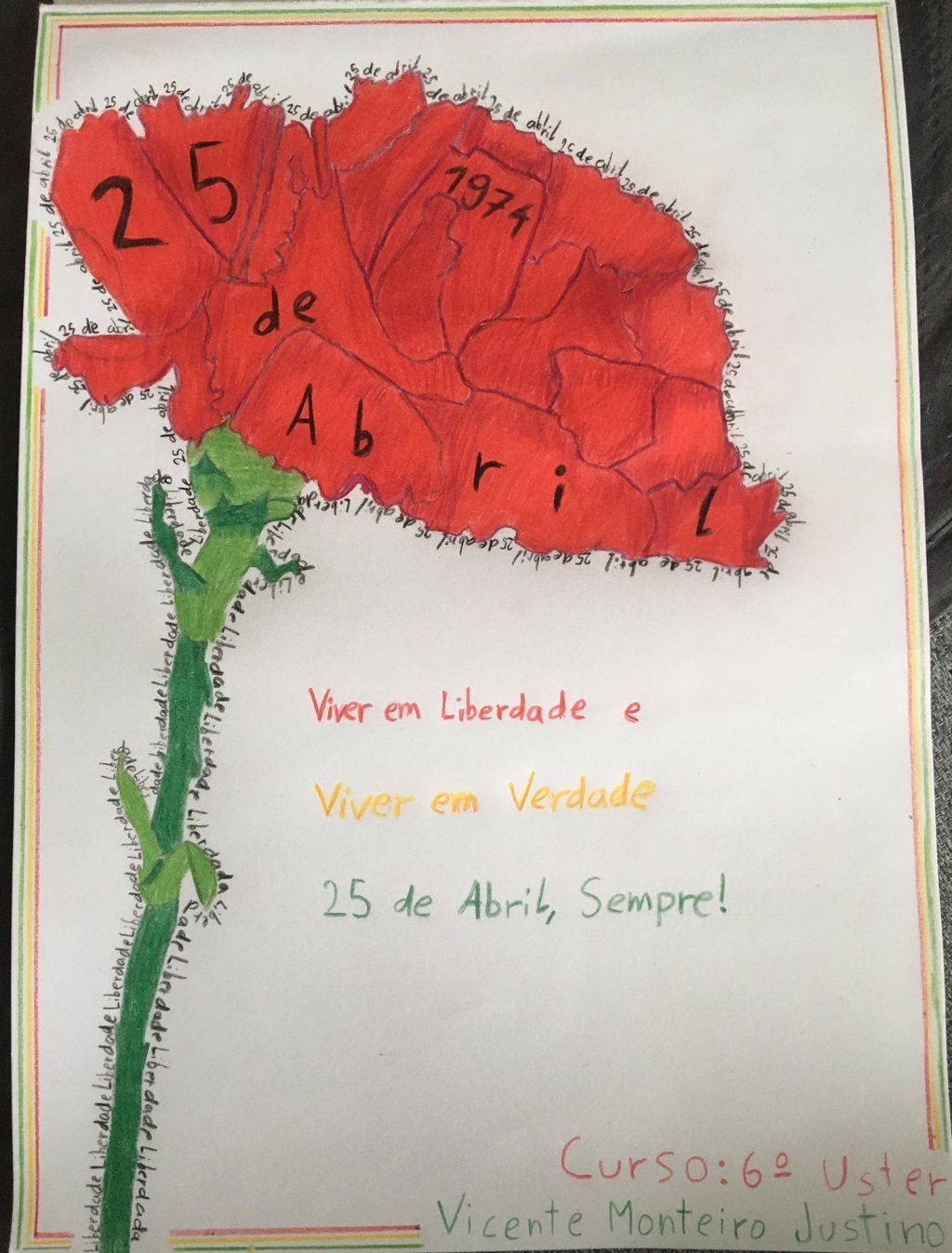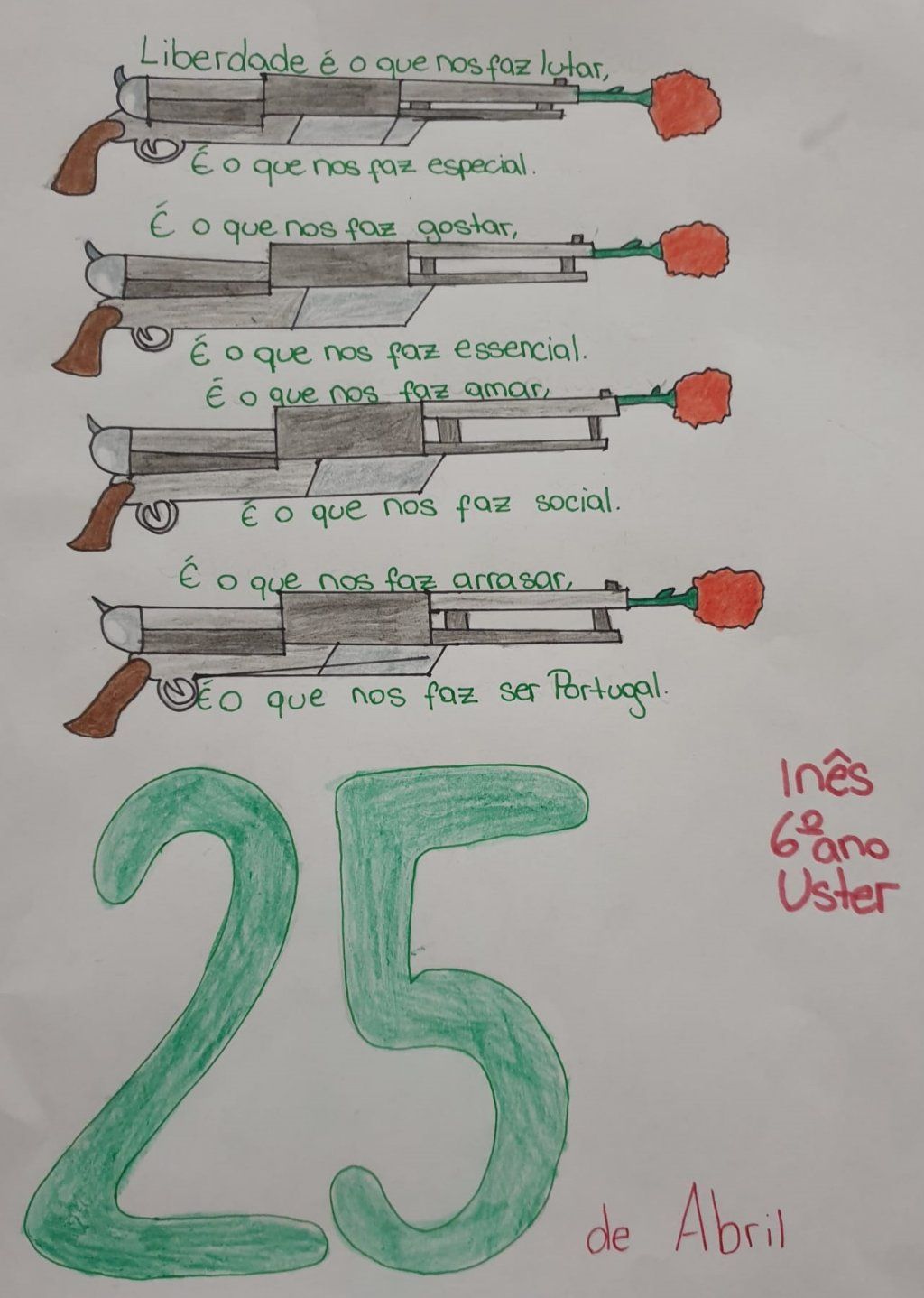 Deixamos aqui algumas impressões de alunos e alunas dos cursos, através de tarefas efetuadas a pedido dos seus professores, sobre o dia 25 de abril de 1974, o Dia da Liberdade e o que este dia passou a significar para estas crianças e jovens, que na altura se encontavam em confinamento.