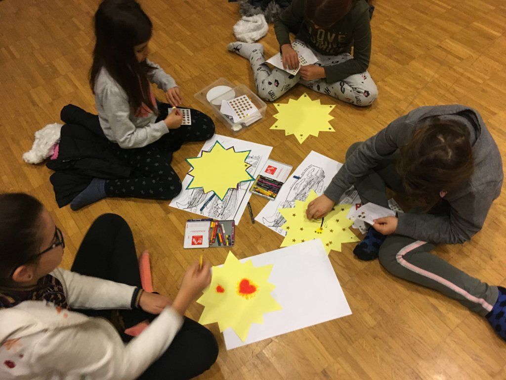 Estrela, que foi adaptado pela docente. Pintaram-se estrela e colaram-se a um mural. Por fim, os presentes deliciaram-se com os biscoitos carinhosamente feitos em forma de estrela.