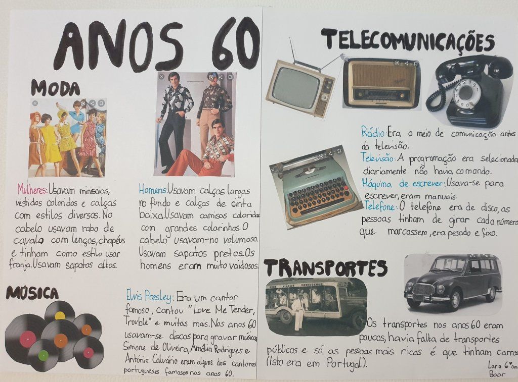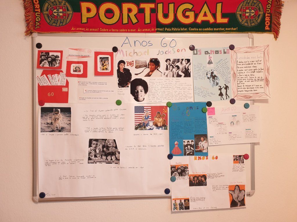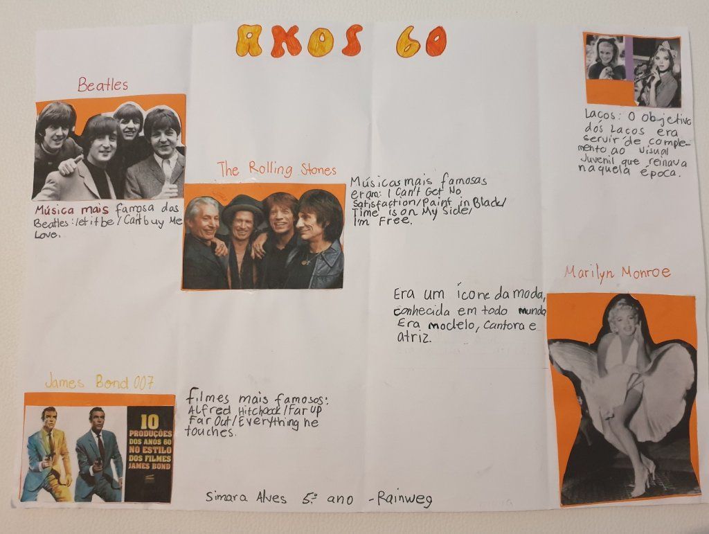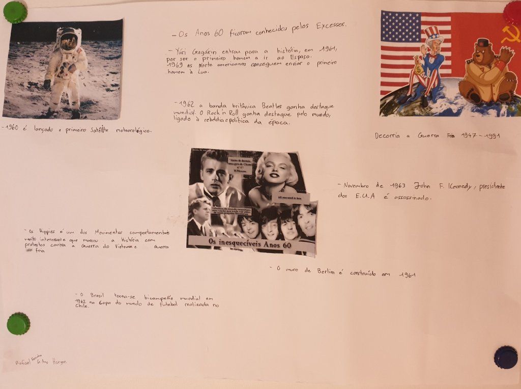 A docente Helena Novais incentivou os seus alunos dos cursos de Baar e Horgen, do nível B1, a desenvolver trabalhos para que ficassem a conhecer melhor os anos 60 e conseguissem retratar as diferenças/semelhanças/influências nos dias hodiernos.,