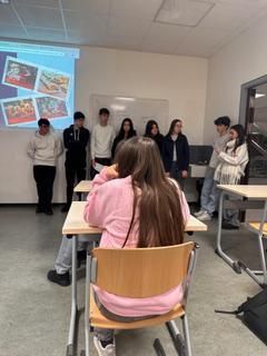 Em Portugal, destacaram-se a Missa do Galo e os sabores únicos da ceia, como o bacalhau e o bolo rei, o presépio, as iluminações das ruas... A apresentação foi feita através do powerpoint relatado pelos alunos. Por outro lado, os colegas espanhóis trouxeram-nos histórias de Natal, as «12 uvas da sorte» à meia-noite do Ano Novo e as celebrações do “Dia dos Reis” em que os presentes são entregues. No final, os alunos fizeram uma pequena atividade de sopa de letras e palavras cruzadas na língua que não era a deles. Foi interessante perceber as semelhanças e as diferenças entre as tradições, que enriquecem a vivência do Natal em cada cultura. Este intercâmbio não só promoveu a compreensão interlinguística e intercultural como também reforçou o espírito de união e partilha tão característico desta época.