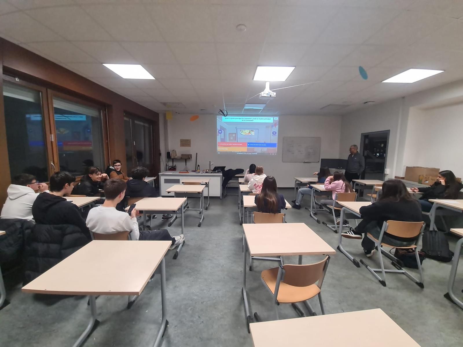 Na Escola CO Coudriers, foi realizada uma aula mista dos Cursos de língua e cultura portuguesas e espanholas, promovendo um intercâmbio linguístico e cultural entre os alunos (9 portugueses e 15 espanhóis). Orientados pelos professores Victor Vares e Mónica Mayo, os estudantes participaram ativamente com atividades enriquecedoras, cujo tema central foram as festividades de Natal e Ano Novo em ambos os países. Os alunos prepararam anteriormente nas aulas trabalhos que destacaram as semelhanças e diferenças culturais, explorando tradições como pratos típicos, músicas e celebrações familiares. Partilharam estes trabalhos no dia 10 de dezembro.