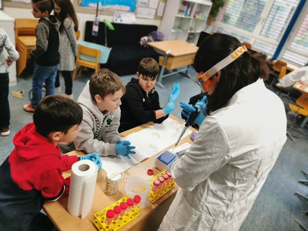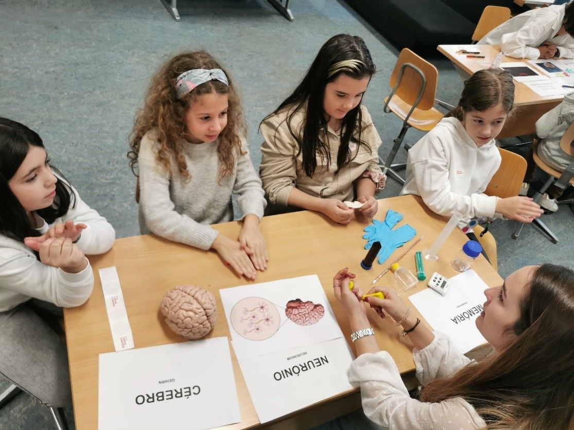 Cinco cientistas foram então à escola e, cada um na sua estação, realizaram diferentes demonstrações e experiências. Os temas abordados foram diversos: desde a física à neurobiologia e à microbiologia. Os alunos tiveram oportunidade de contactar com todas as experiências, mudando de estação a cada 12 minutos.